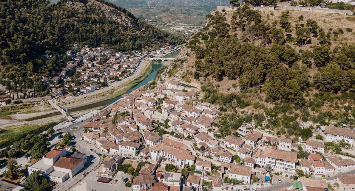 About two hours south of Tirana, Albania’s capital, along the banks of the Osum River, the red-tiled roofs of the city’s houses climb the gentle slopes of the valley, with hundreds of windows peering out like watchful eyes.